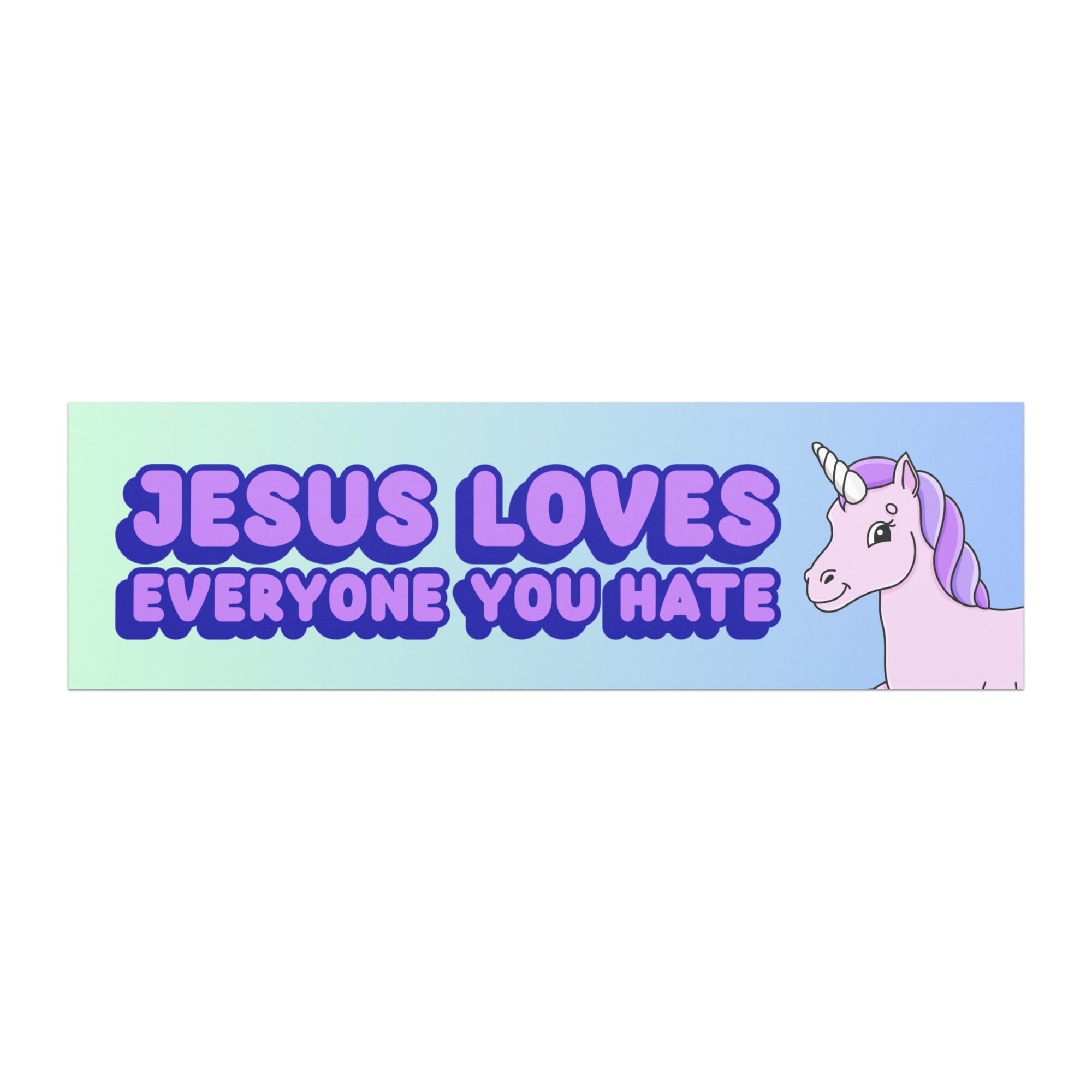 Piss off the conservatives with our Jesus Loves Everyone You Hate car magnet.