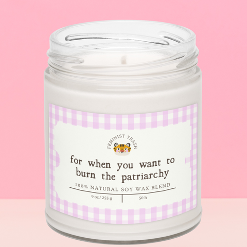 Support independent feminist art and sustainable practices when you shop at Feminist Trash. Just click the pink add to cart button to grab this funny candle today!